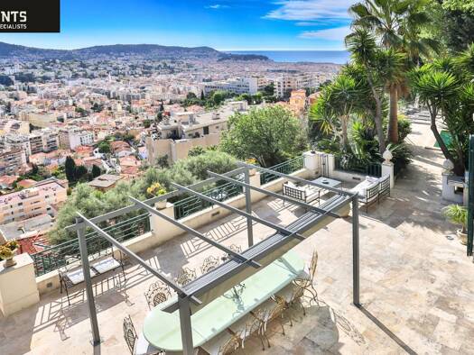 NICE PESSICART - VILLA OF 262 m2 FOR SALE - QUALITY MATERIALS - SEVERAL TERRACES - POOL AND SPA - POOL HOUSE - MAGNIFICENT VIEW OF THE CITY AND THE SEA Nestled in the hills north of central Nice, the...