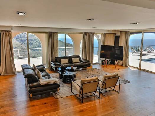 This spacious 365m2 villa, set on a 2,630m2 landscaped plot planted with Mediterranean trees and shrubs, enjoys a peaceful setting, overlooking the village of Eze. The south-facing property offers sp...