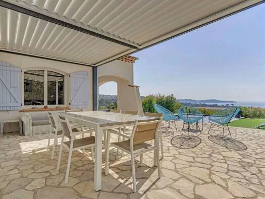 Located at the top of the hills, overlooking the bay of Cavalaire-sur-Mer, beautiful villa enjoying a sea view combining Provencal charm and modern interiors. This villa with many terraces offers lar...
