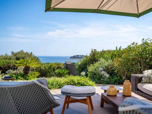 Just a few minutes from the beach, a beautiful renovated villa with a harmonious view of the sea and Cap Lardier, located in a peaceful and sought-after estate. Facing South-East, this charming villa...