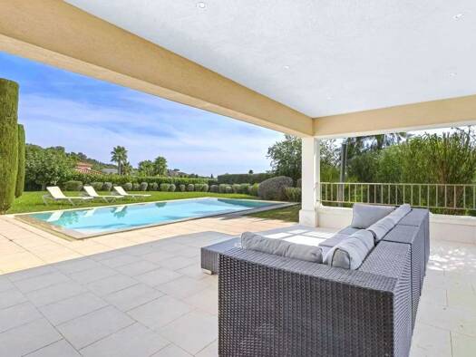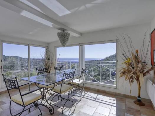 Nestled in a commanding position at the end of a cul-de-sac in a quiet neighborhood, this elegant Provencal villa offers panoramic views from Cap Lardier to the Iles d'Or. The 1600 m2 grounds, adorne...