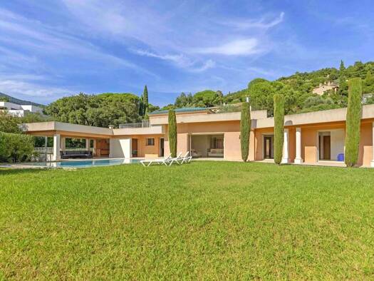 Nestled on a peaceful hillside, this beautiful high-end villa, fully renovated, offers a stunning sea view over the Bay of Cavalaire and Cap Lardier. It boasts 258 m2 of living space, featuring five ...