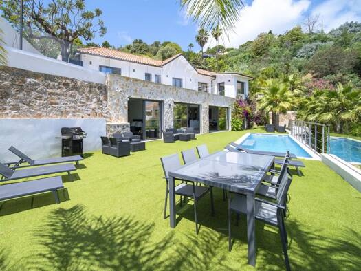 This beautiful villa is set on the hills of Golf-Juan and offers spectacular views over the Mediterranean Sea. Recently renovated in a modern style, the house offers around 300m2 of bright living spa...