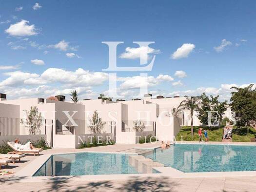 Wir präsentieren Ihnen diesen hellen und modernen Bungalow aus einem Neubauprojekt, das 2024 fertiggestellt wurde, gelegen im Erdgeschoss einer privaten Wohnanlage mit Gemeinschaftspool und Grünfläch...