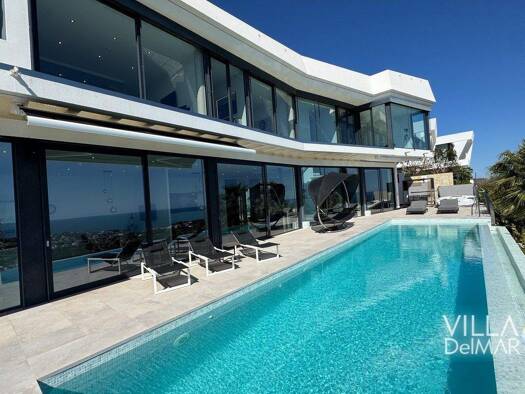 Diese moderne freistehende Luxusvilla vereint architektonische Eleganz, höchsten Wohnkomfort und einen unvergleichlichen Panoramablick auf das glitzernde Mittelmeer. Auf drei Ebenen bietet dieses Anw...