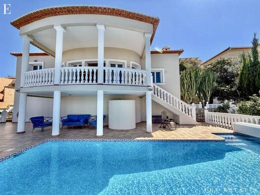 Auf erhöhter Lage in Dénia beeindruckt diese elegante Villa mit drei Schlafzimmern und drei Badezimmern sofort durch weitreichende Panoramablicke über die Stadt hinaus aufs Mittelmeer. Komfort mit un...