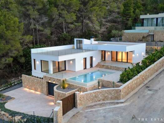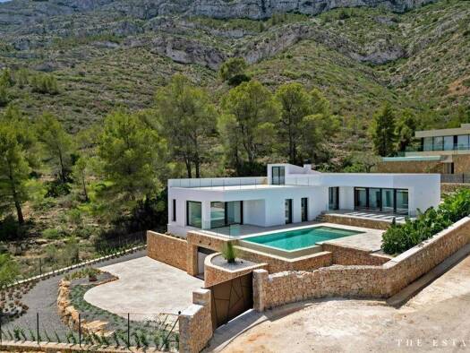 Diese außergewöhnliche Villa, fertiggestellt Ende 2023, vereint moderne Architektur, erstklassige Materialien und mediterranes Flair. Auf einem 1.434 m² großen, angelegten Grundstück am Montgó gelege...