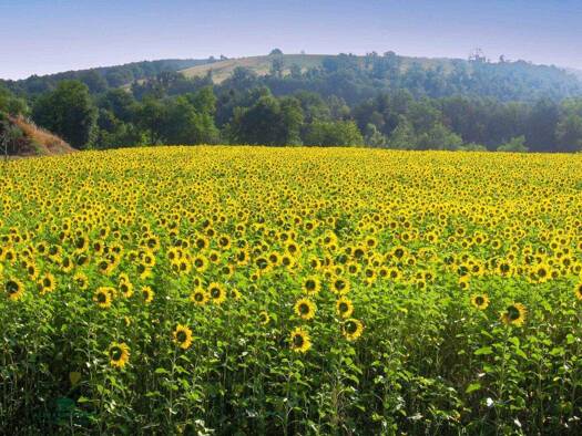 Im Hinterland des südlichen Gardasees, umgeben von Natur und den grünen Weinbergen des Lugana DOC mit freiem Blick auf die umliegende Landschaft, ruhige und hügelige Gegend, ein paar Kilometer vom Se...
