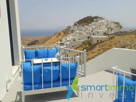 Immobilie zum Verkauf in Chora Serifos mit unbegrenzter Aussicht. Amphitheaterartig gebaut. Es umfasst ein Haus von 95 m², ein Studio-Apartment von 38 m², zwei Geschäfte von 145 m² und 45 m² mit eine...