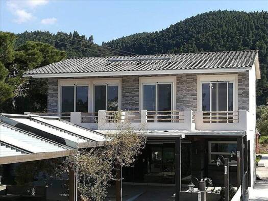 Hotel in Finikounda Ref.432: Zweigeschossiges Hotel im Herzen des seafront Dorfes, Entfernung zum sandigen Strand 117 m, Baujahr 2010, Grundstück 397 m2, Hotel 390 m2 inklusive Keller (79 m2), 8 Apar...