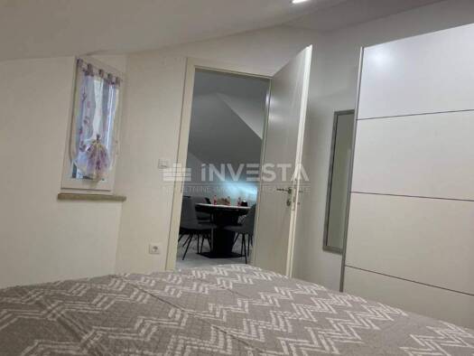 Zum Verkauf stehen zwei neue, vollständig möblierte Wohnungen im zweiten Stock und im Dachgeschoss eines Neubaus, einschließlich eines Parkplatzes. Im erweiterten Zentrum von Pula, in ausgezeichneter...