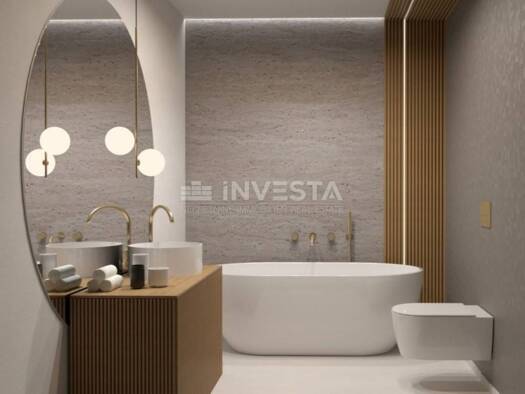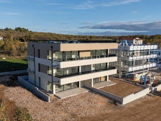 In einer äußerst ruhigen und prestigeträchtigen Lage in der Umgebung von Labin befindet sich diese exklusive S5 Wohnung im ersten Stock eines modernen Neubaus. Nur 500 Meter vom Meer entfernt und etw...