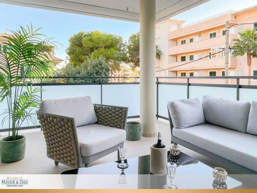 Diese exklusive Wohnung im 1. Obergeschoss befindet sich in einer modernen, gepflegten Wohnanlage und vereint zeitgemäßen Wohnkomfort mit einer tollen Lage nahe der beliebten Bucht Son Moll. Die Wohn...