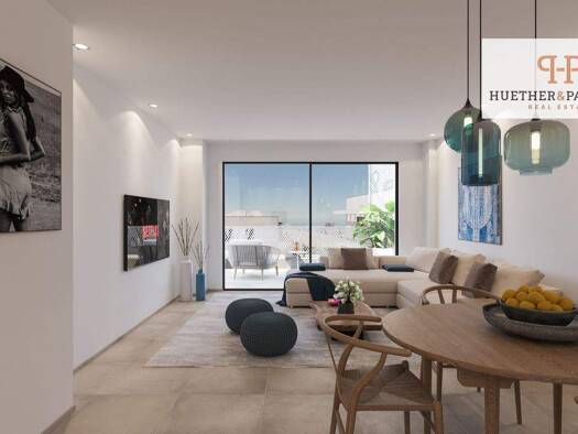 Dieses stilvolle und durchdacht konzipierte Apartment mit 81 qm Wohnfläche liegt in zweiter Meereslinie an der Playa d'en Bossa. Die lichtdurchflutete Wohnung im 1. Stock eines modernen, nachhaltig e...