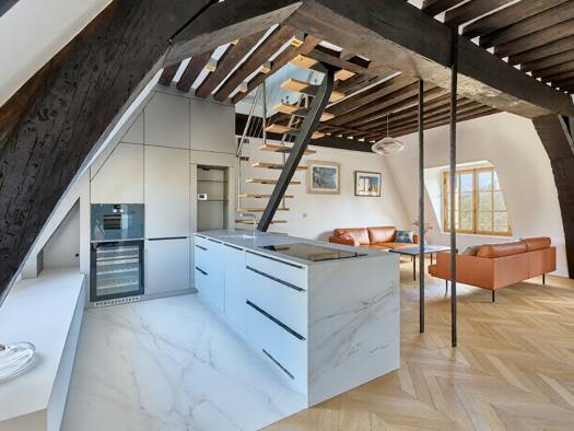 Paris 4th - In the heart of one of Paris's most iconic architectural ensembles, this five-room duplex apartment occupies the third floor of the prestigious Hotel de Chaulnes, a listed historical monu...