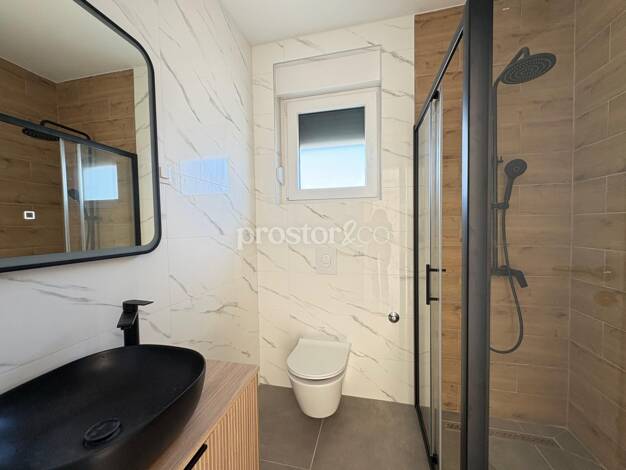 In einer äußerst ruhigen und prestigeträchtigen Lage in der Umgebung von Labin befindet sich diese exklusive S5 Wohnung im ersten Stock eines modernen Neubaus. Nur 500 Meter vom Meer entfernt und etw...