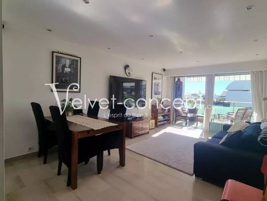Face à la mer, ce somptueux appartement de 104 m² bénéficie d'une grande terrasse ensoleillée de 46 m² offrant une vue exceptionnelle sur la mer et les îles de Lérins. L'appartement a fait l'objet d'...