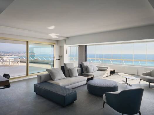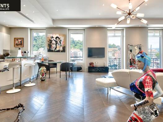 Splendid traversing loft style apartment of 188 m2 with a beautiful terrace of 32m2 with a splendid sight on Place Massena, on the last floor of a residence classified with the Title of the Historic ...