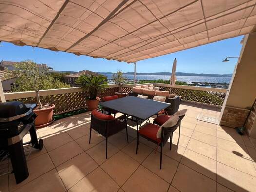 For sale top floor 4 room apartment with a panoramic sea view, in Sainte Maxime, Gulf of St Tropez, French Riviera Located on the last floor of a building with a digital entry code in the centre town...
