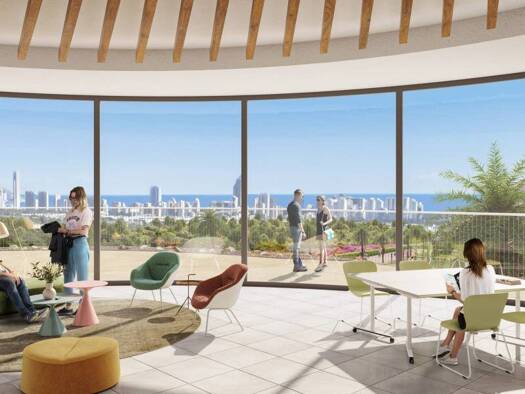 Kurzbeschreibung Die 2-3-Zimmer-Wohnungen in La Nucía, Alicante, haben helle Innenräume, Terrassen mit zwei Aussichten, Premium Ausstattung und Einrichtungen wie Spa, Fitnessstudio, Gärten und Pool i...