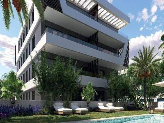 Neubau-Apartment mit 2 Schlafzimmern, Terrasse und Pool in San Juan de Alicante Diese moderne Neubau-Wohnanlage in Nou Nazareth, einer der begehrtesten Gegenden von San Juan de Alicante, bietet 32 ex...