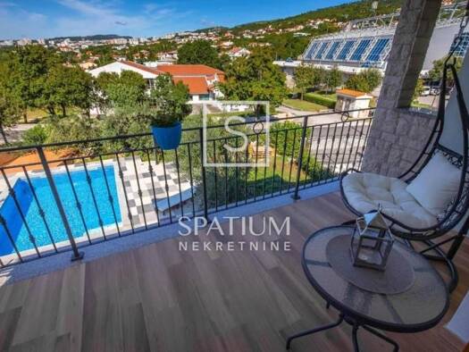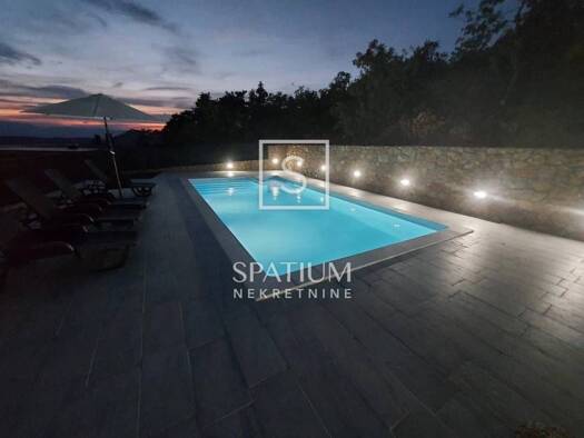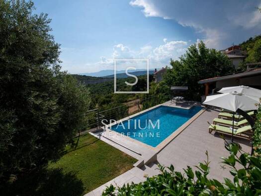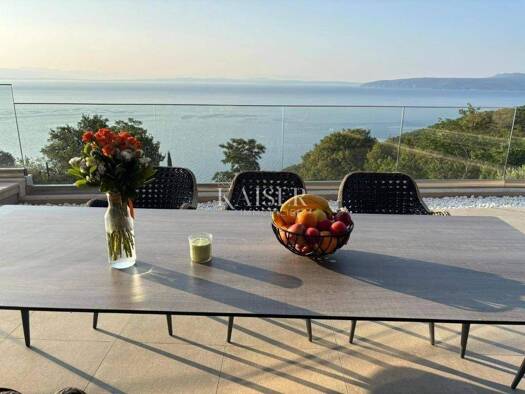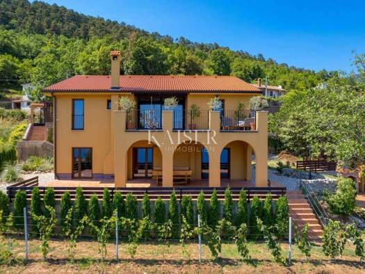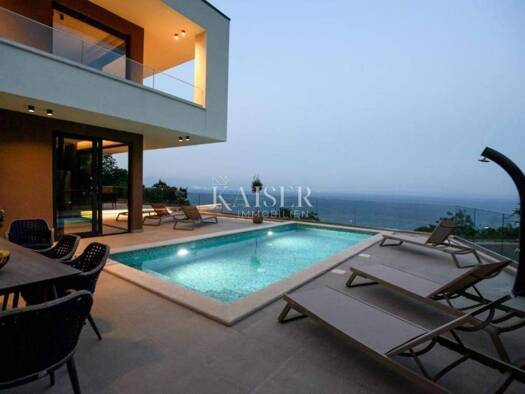 Kaiser immobilie präsentiert ein technisch hoch ausgestattetes und komfortabel eingerichtetes Haus in der Nähe von Opatija auf einem Hügel mit wunderschönem Blick auf die Kvarner Bucht. Dieses Luxush...