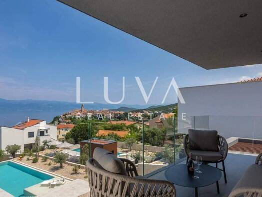 Moderne Villa mit Pool und Panoramablick aufs Meer - Langzeitmiete in Vrbnik, Insel Krk In der ruhigen und authentischen Umgebung von Vrbnik auf der Insel Krk, nur 300 Meter vom Meer entfernt, befind...