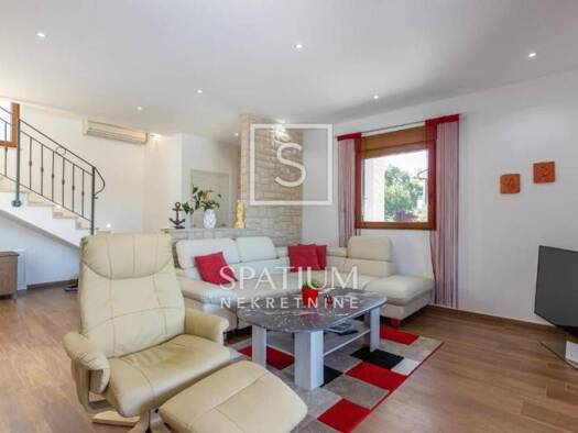 Smjestena u mirnom i skladno uredenom dijelu Lovrana, ova prostrana dvojna kuca povrsine 194,10 m² predstavlja idealan spoj komfora, funkcionalnosti i mediteranskog mira. Prostiruci se na tri etaze -...