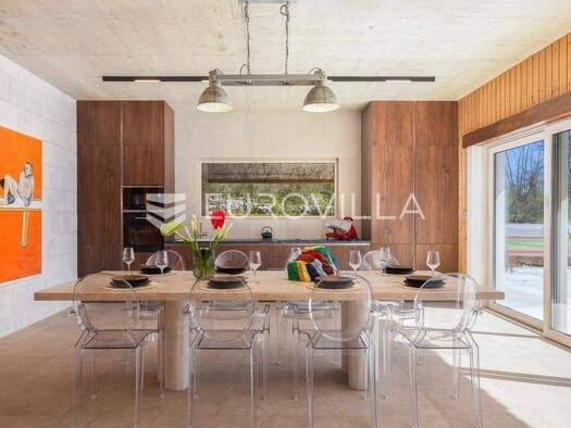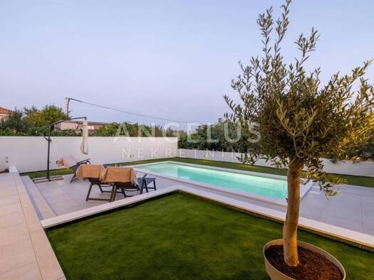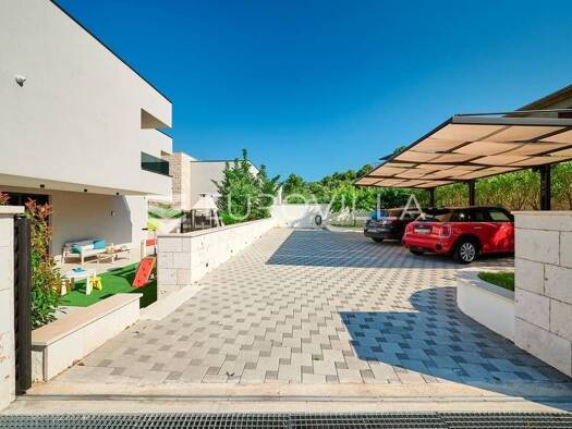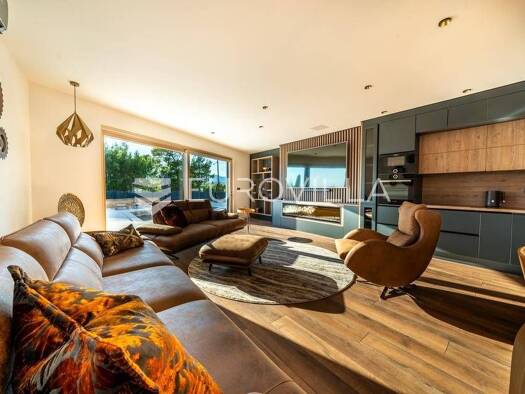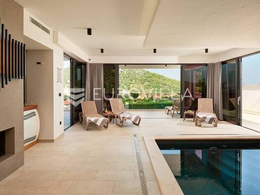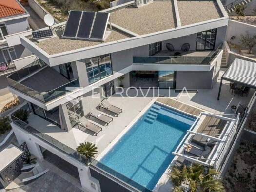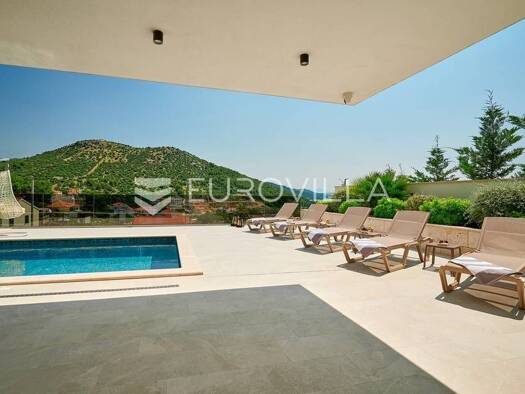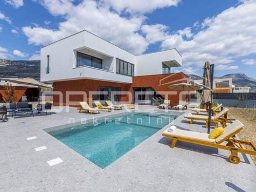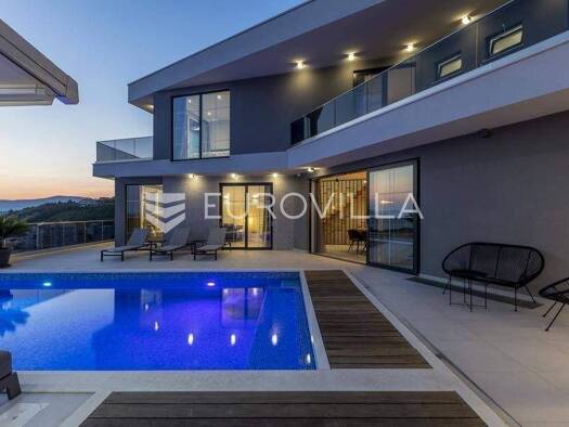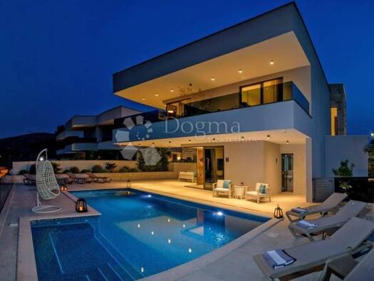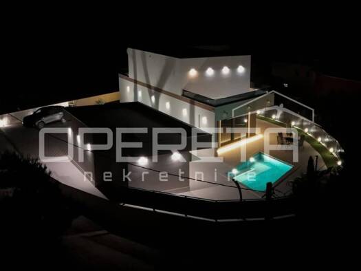Novo dizajnirana luksuzna vila s tri kata, pruza vam nevjerojatan spoj elegancije i udobnosti. Vila se prostire na 360m2, te ukljucuje grijani bazen smjesten na terasi prizemlja, s prekrasnim pogledo...