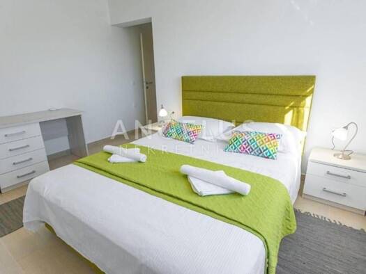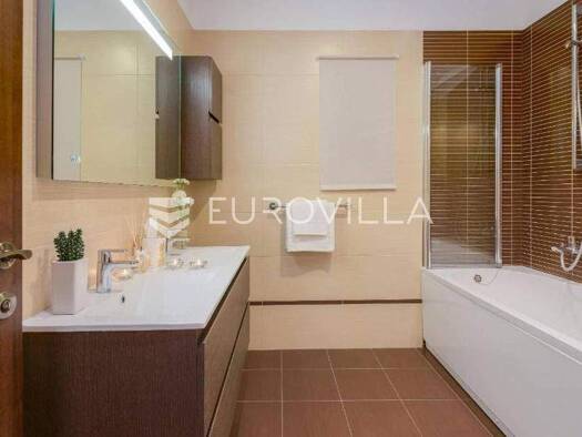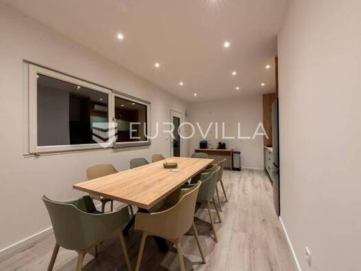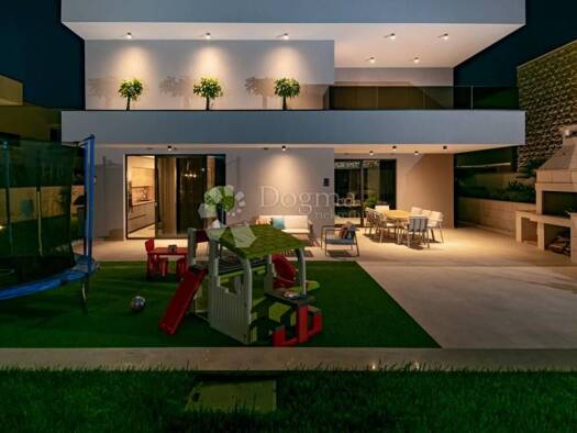 Novo dizajnirana luksuzna vila s tri kata koja ima vanjski grijani bazen, rostilj, djecje igraliste i unutarnju teretanu i saunu. Prostire se na vise od 360 m2, ima cetiri spavace sobe s vlastitim ku...