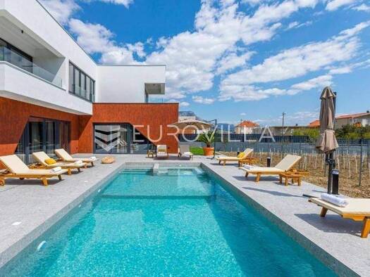 Ein luxuriöses Haus mit Pool und Jacuzzi steht in Podstrana, in der Nähe von Split, zur Miete. Das Haus ist modern eingerichtet, vollständig ausgestattet und erstreckt sich über drei Etagen. Im Erdge...