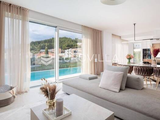 In einer ruhigen und gepflegten Gegend von Stobrec, an einem erhöhten Standort mit offenem Blick auf das Meer, steht eine brandneue Villa zur langfristigen Miete zur Verfügung, die ein hohes Maß an K...