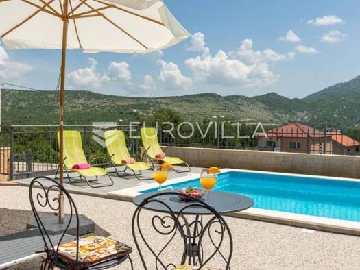 Solin, Kucine, moderno uredeno i potpuno opremljena dvokatnica s grijanim bazenom i pogledom na more.Dostupna je za najam izvan turisticke sezone (od 15. Rujna 2025 godine do 15. Svibnja 2026 godine ...