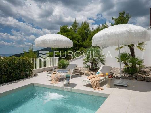 Ein luxuriöses Haus mit Pool und Jacuzzi steht in Podstrana, in der Nähe von Split, zur Miete. Das Haus ist modern eingerichtet, vollständig ausgestattet und erstreckt sich über drei Etagen. Im Erdge...