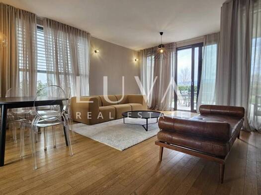 Luxushaus zur Miete in Novi Zagreb, Riverside Golf. Das Haus erstreckt sich über drei Etagen und besteht aus: Untergeschoss: Schlafzimmer, Abstellraum, Wohnzimmer/Fitnessraum Erdgeschoss: Wohnzimmer ...