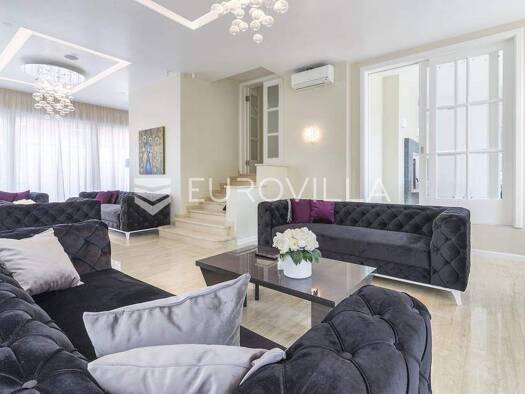 Prekrasna vila povrs?ine 550 m2 smjes?tena na parceli od 750 m2 koja oc?arava svojom elegancijom i funkcionalnos?c?u. Kuc?a je razvedena na tri etaz?e, pruz?ajuc?i obilje prostora i moguc?nosB za udo...