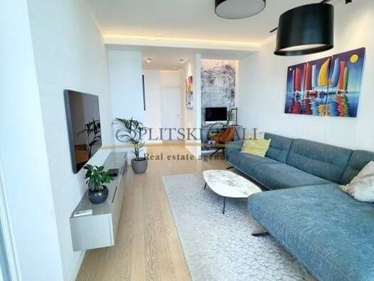 Split, Trstenik, in einem Neubau mit Aufzug: Komfortable Wohnung mit 110 m Wohnfläche und sicherem Parkplatz.Die Wohnung besteht aus einer Wohnküche, zwei Schlafzimmern, zwei Badezimmern, einem Hausw...