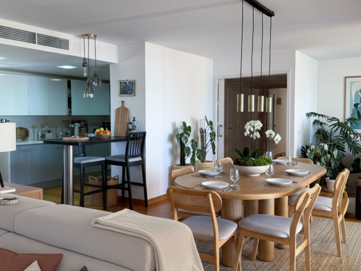 Grosszügiges Wohnzimmer mit offener Küche, 2 Doppelschlafzimmer, 2 Bäder (eines davon EnSuite), Dachterrasse mit Meerblick