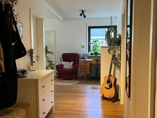hübsche, helle Dachwohnung zum Wohl fühlen gepflegtes, modernes Mehrfamilienhaus in einer ruhigen Seitenstraße Durchgang trockenen Fußes direkt von/in die Garage Tierhaltung nicht erwünscht - sorry K...
