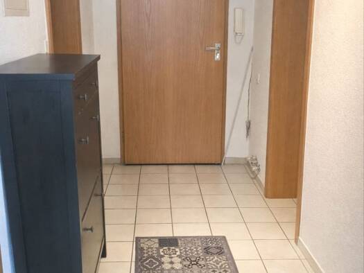 Flur - Dusche und WC - Schlafzimmer - Essbereich - Küche - Wohnzimmer mit Balkon Zur Wohnung gehören ausserdem ein Stellplatz (16EUR/Monat) sowie ein Kellerraum. Eine Waschküche steht zur gemeinschaf...