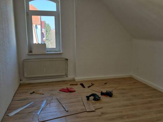 Die Wohnung im 1. Obergeschoss mit einer Größe von 56 m² wird zum 31.03.26 frei. Aufteilung: - Korridor - Küche mit Zugang Balkon - Badezimmer mit Badewanne - Wohnzimmer - Schlafzimmer