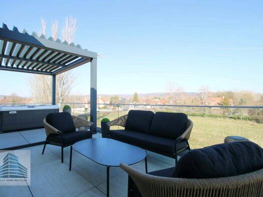 Diese luxuriöse Wohnung überzeugt mit ihrer 72,20 m2 Traum Dachterrasse samt unverbaubarem Panorama Weitblick bis nach Fertörakos sowie einer weiteren Terrasse, die über die beiden Schlafrä...