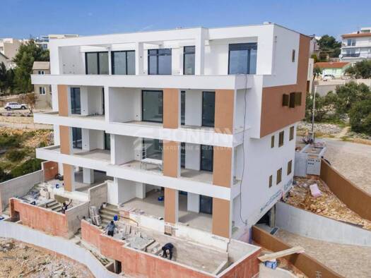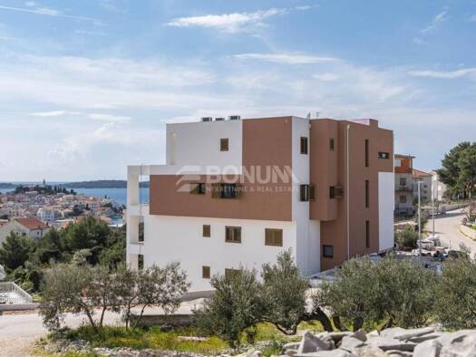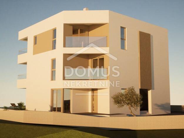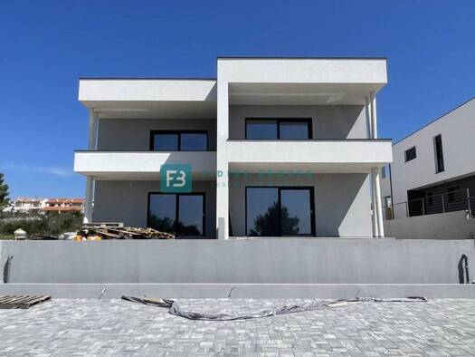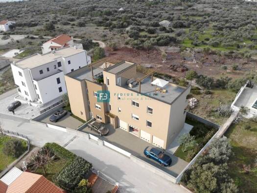 Vodice, ruhige Lage - Neubau: Wohngebäude mit 4 Wohneinheiten auf 3 Etagen (Erdgeschoss + 1. Obergeschoss + 2. Obergeschoss). Das Gebäude überzeugt durch ein modernes Design und wird mit Fußbodenheiz...