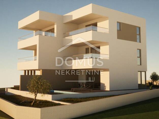 TRIBUNJ - Luxuriöse 2-Zimmer-Wohnung mit Terrasse und Meerblick zu verkaufen, nur 650 m vom Strand und 1500 m vom Zentrum entfernt! Der Bau eines modernen Mehrfamilienhauses mit insgesamt 9 Wohneinhe...