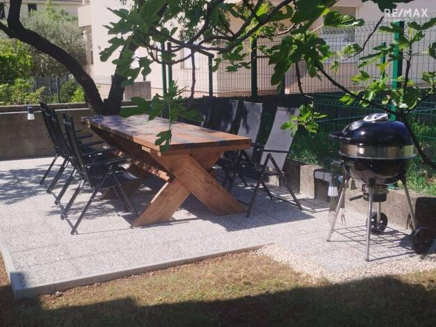 Nur 190 m vom Meer und 320 m vom Zentrum von Gornji Karin entfernt steht ein komplett möbliertes Haus mit zwei separaten Wohneinheiten und zusätzlichem Potenzial im Dachgeschoss zum Verkauf. Auf eine...