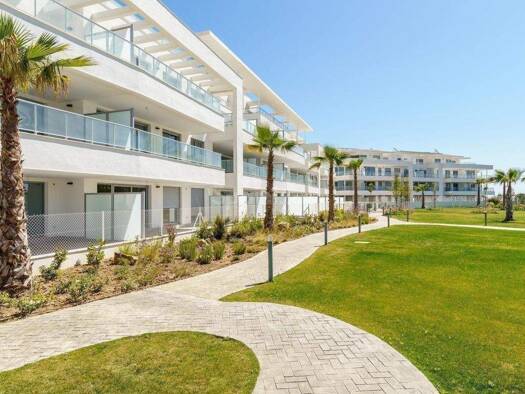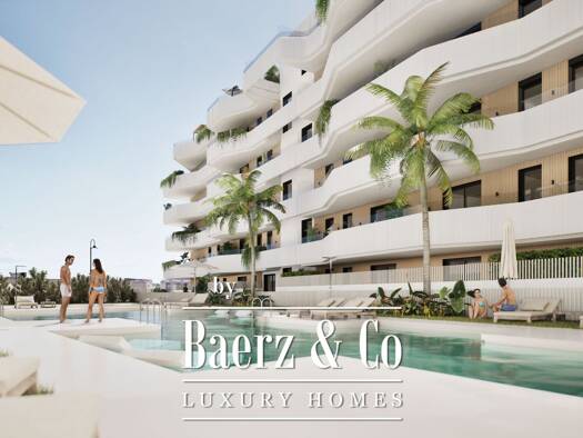 Wunderschöne Wohnung im Erdgeschoss mit einer großzügigen privaten Terrasse und Schwimmbad, ideal gelegen zwischen Golfplätzen und Stränden. Lieferdatum: März 2027. Diese zeitgenössische Wohnanlage b...