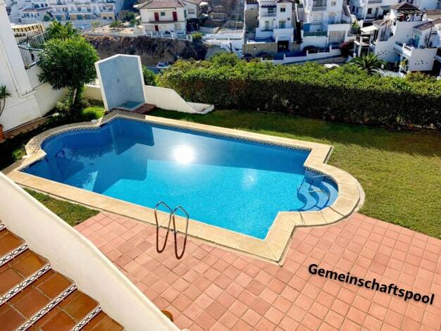 Reihenhaus mit drei Schlafzimmern, zwei Terrassen und herrlichem Ausblick in einer ruhigen Wohnanlage in Nerja, nur wenige Gehminuten vom Strand Burriana entfernt. Dieses charmante Reihenhaus erstrec...
