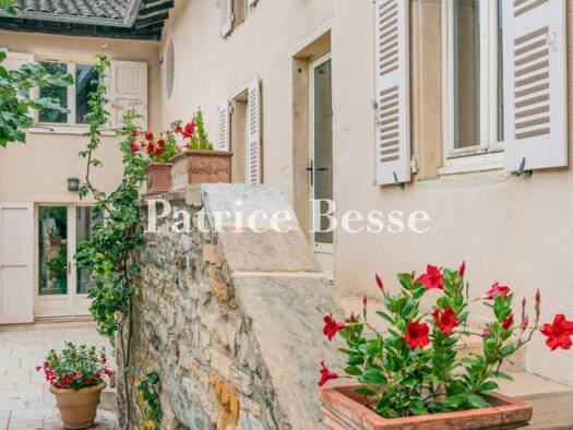 An 1850s mansion, with a wine store and estate keeper's house, in 2 hectares of landscaped grounds, 45 minutes from Lyon, on top of a hill in the Beaujolais vineyards. This approximately 2-hectare es...