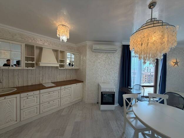 Die Wohnung hat eine Fläche von 176 m². Die Raumaufteilung umfasst ein Wohnzimmer, zwei Schlafzimmer, eine Küche mit Essbereich sowie ein Badezimmer. Große Fenster und Balkone sorgen für viel Tagesli...