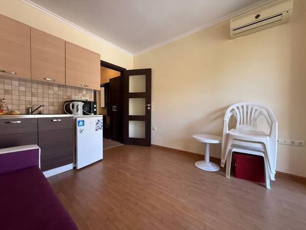 Charmantes, möbliertes Studio-Apartment im beliebten Iris-Komplex, nur 200 Meter vom Strand in Nessebar entfernt. Die Wohnung befindet sich im 4. Stock eines gepflegten Gebäudes mit Aufzug und bietet...